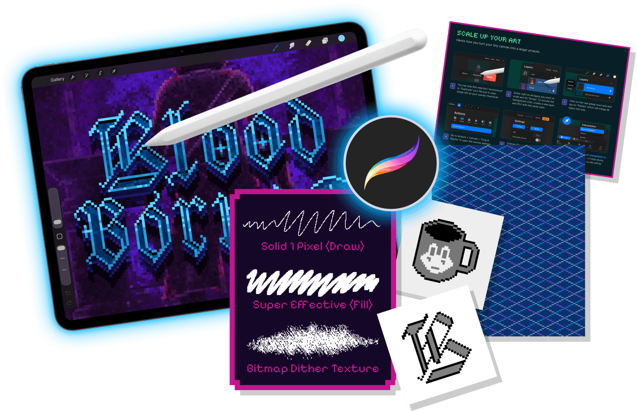 ✨ It’s Dangerous to Go Alone — Take This! Grab my free mini toolkit for Procreate including 3 brushes, 3 templates, and a mini-manual — made for beginner pixel adventurers 🎨🕹️
